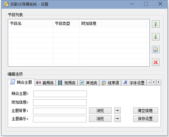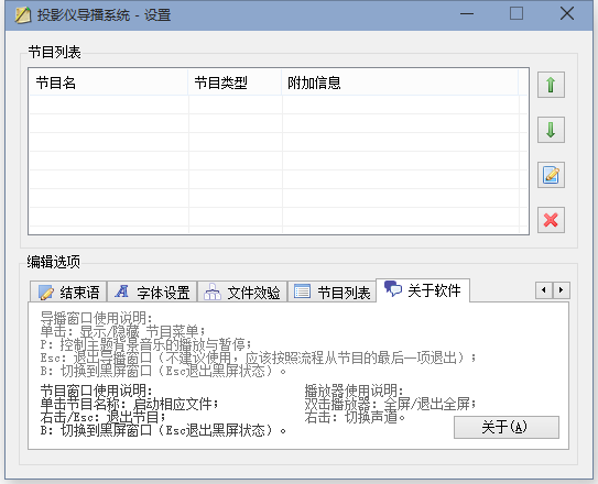 投影仪导播系统 2009-12-26 09:17:00 大二元旦晚会,为了体现我们班元旦晚会的专业性(实际上就是为了达到类似央视春晚的大屏幕显示效果),特别开发的这个东西。 C#开发,全屏应用,简单的节目流程编排、控制,MP3及WMV视频播放,等功能,使用xml保存配置。 系统分为:设置模块和主模块(根据设置模块的配置直接进入晚会导播)。    非特殊说明,均为原创,原创文章,未经允许谢绝转载。 原始链接:投影仪导播系统 赏 Prev 多媒体键盘模拟器 Next 在线代码注释生成系统