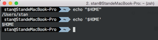 shell中单引号和双引号的区别 2015-03-10 08:02:33 单引号会将字符串中的内容原样输出。 双引号会替换内部的命令。 如下:  非特殊说明,均为原创,原创文章,未经允许谢绝转载。 原始链接:shell中单引号和双引号的区别 赏 Prev 使用expect脚本的正确姿势 Next Shell脚本中获取当前执行目录